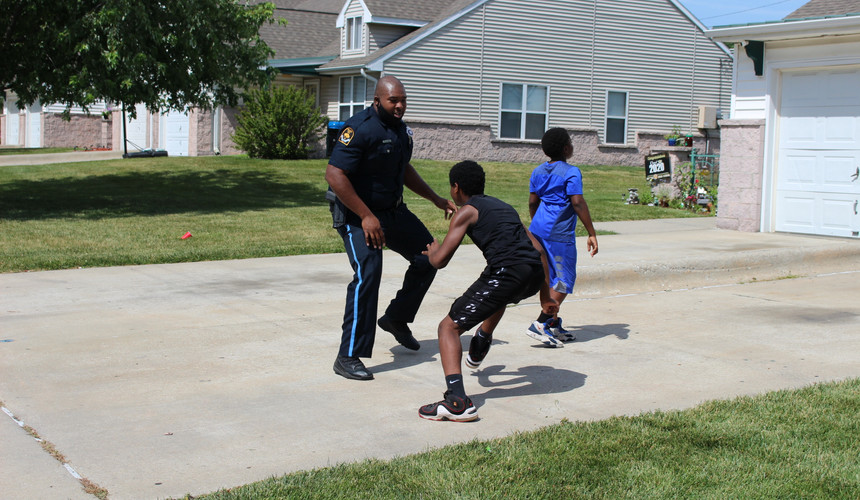 On Wednesday, July 1st, Omaha Police Officers Deshawn Haynes and Camron Payne delivered a new basketball hoop to 13-year-old AuVeon and 10-year-old CurTrell just in time for summer fun. Deputy Chief Ken Kanger was able to obtain a new hoop from donors through the Operation Neighborhood Engagement Through Sports program, or NETS for short.